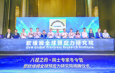 10月15日,由歐維姆公司主辦的“八桂之約·院士專家冬令營暨歐維姆全球預應力研究院揭牌儀式”在廣西柳州舉行。歐維姆全球預應力研究院揭牌成立后,將整合全球優質資源,構建全球市場和技術應用平臺,更高效地推動全面國際化進程,使預應力技術惠及更廣泛的地區和人群。