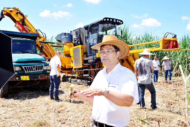 9月27日,距離甘蔗收獲期還有一個(gè)多月,來賓市廖平農(nóng)場(chǎng)的甘蔗田里卻忙開了,由來賓市農(nóng)業(yè)機(jī)械化管理局和柳工農(nóng)機(jī)公司共同舉辦的甘蔗生產(chǎn)全程機(jī)械化現(xiàn)場(chǎng)演示會(huì)正在熱鬧的進(jìn)行著。太陽被人聲鼎沸的場(chǎng)面吸引,過來湊熱鬧,展示會(huì)場(chǎng)面熱度、甘蔗田地表溫度節(jié)節(jié)攀升。集團(tuán)公司副總裁黃祥全(如下圖),自治區(qū)、柳州市、來賓市、行業(yè)等相關(guān)部門領(lǐng)導(dǎo),各大糖業(yè)集團(tuán)、農(nóng)業(yè)公司、合作社的代表,以及許多甘蔗種植大戶等近500名嘉賓到現(xiàn)場(chǎng),在炙熱的陽光下,瞇縫著眼、呲著牙、伸長(zhǎng)脖子,往甘蔗田里張望。