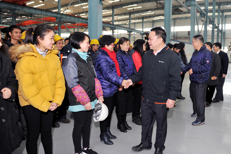 開局就是決戰(zhàn),起步就是沖刺。2018年濃濃的年味還未散去,公司不少生產(chǎn)制造系統(tǒng)已經(jīng)開足馬力忙生產(chǎn)了,無論在公司本部還是異地公司,到處已是忙碌的身影,一幅趕早、抓早、拼早的新春新景,令人振奮。帶上新春的祝福和節(jié)日的問候,公司領(lǐng)導(dǎo)曾光安率隊到子公司管理人員、技術(shù)人員、生產(chǎn)人員的中間,開展新春慰問活動。