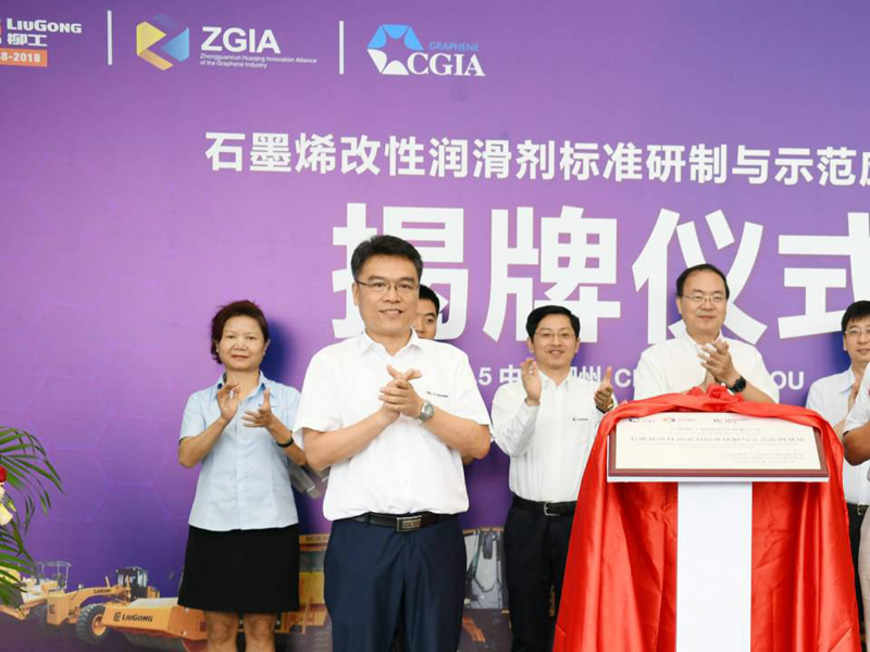 5 月31 日上午,由中國石墨烯產業技術創新戰略聯盟與股份公司共建的“石墨烯改性潤滑劑標準研制與示范應用基地”揭牌儀式在公司全球研發中心圓滿舉行。柳州市副市長王偉、集團公司副總裁黃建兵、中國石墨烯產業技術創新戰略聯盟秘書長李義春出席儀式并致辭。中國計量科學研究院、柳州市工信委、柳州市科技局領導, 以及全國石墨烯行業科研、制備、應用、檢測認證、知識產權等相關機構專家50余人參加了本次活動。