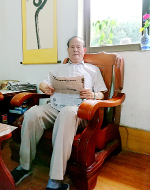 蔣曉榮在家中看報(bào)